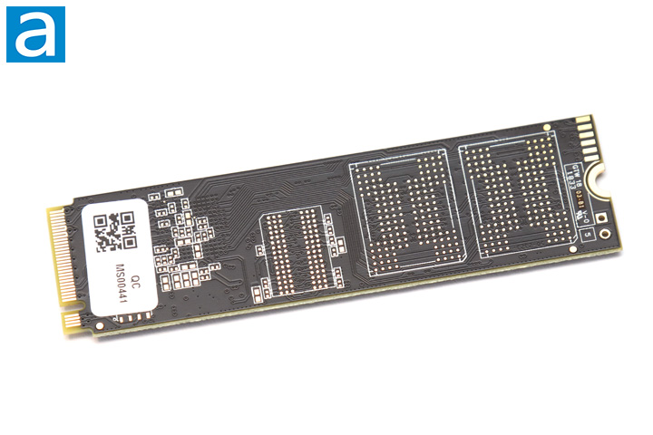 On the underside of the Crucial P1 1TB, you will find no components to be interested in. A small label on the back of the drive shows a QR code and a small set of numbers and letters, presumably to identify the device. The rest of the board shows off just some possible placement for other chips on possibly larger configurations of the P1. While this is currently the largest available Crucial P1, there is supposed to be a 2TB model, which will populate these pads on the back. Otherwise, you can see the board comes in a mostly black color scheme with some white outlines for the components.