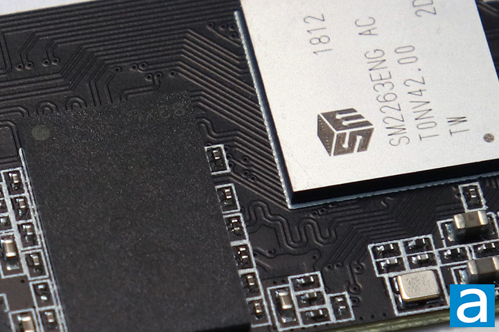 The other major component to take note of are the two NAND flash nearby. It is marked 'NW947'. According to the manufacturer, these are Micron 64-layer quad-level cell or QLC NAND flash chips. With some quick math, we can see that each of the NAND flash chips are 512GB in size, making up the full 1TB capacity together. In the Windows OS, you will see 931.50GB available for use. QLC is the newest developing of NAND flash, stacking four bits per cell, instead of single-level cell or SLC which only has one bit per cell. QLC is being developed and produced because it can potentially have a much lower price per gigabyte due to its denser nature. In addition, it can offer similar performance though caching. QLC relies heavily on the SLC write cache to keep faster speeds, which can vary depending on how full the drive is. On a nearly empty drive, the cache will be larger compared to when it is full, which should result in relatively fast performance.