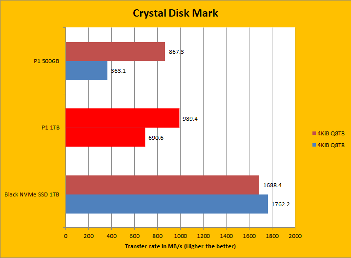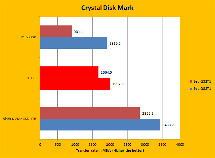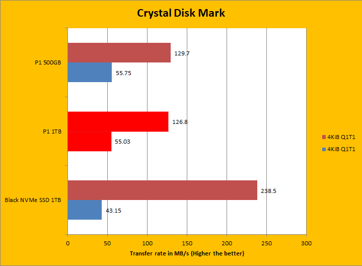 As for this review, we updated our Crystal Disk Mark benchmark to version 6.0. However, the results are not compatible with the older version 3.0 we have tested with in the past, so we have to restart our graph results. Looking at the sequential read and write results, this Crucial P1 1TB is right in the middle of the pack, though this is understandable considering there are only three drives on the graph, haha. This follows a similar trend with the rest of the results, though the P1 500GB version did seem to close the gap with slightly higher numbers. Otherwise, you can see the pure dominance on display with the WD Black NVMe SSD 1TB, which is more a testament to its great performance numbers rather than the ones from the P1. However, we will continue to see more drives on this graph in the future, so we can get better relative results.