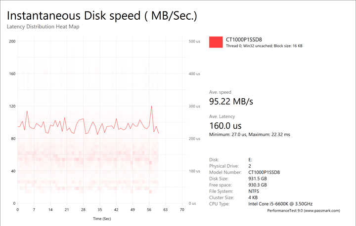 This Advanced Disk Test, which is part of PerformanceTest, measures the data transfer speed when reading or writing data to one or more disks. The speed that data can be transferred between memory and a hard disk drive is one of a system's most important performance aspects. There are quite a few factors which have a bearing on this speed and the Advanced Disk Drive Test allows the user to vary most of these factors and compare the results.