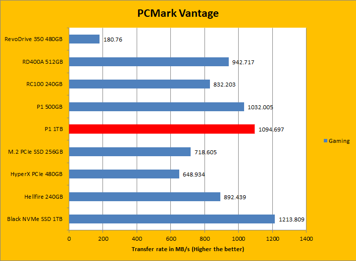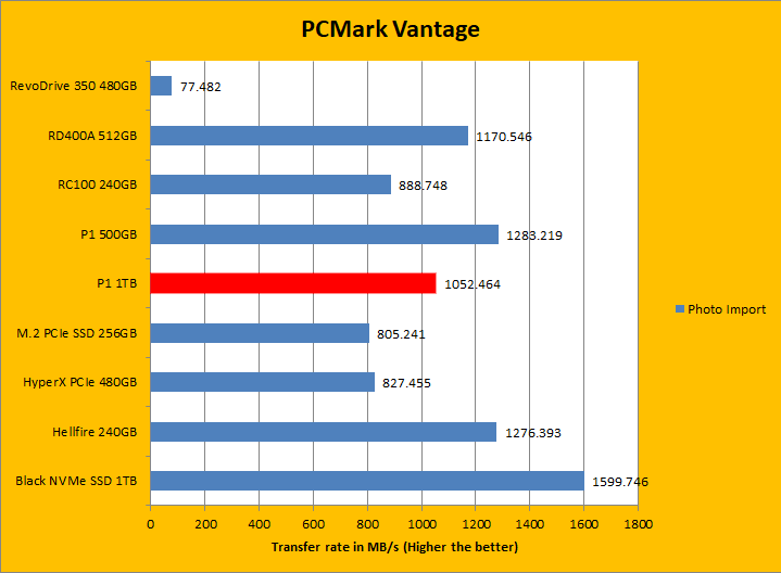 PCMark Vantage aims to shed a little more insight into real life performance of your computer hardware by semi-synthetic means -- and all insight is good, right? The great thing about standardized tests is anyone can repeat them and get very similar results, given identical hardware. I am not going to narrate the stuff above in detail, because the graphs can tell you enough. PCMark Vantage uses some pretty simple simulations, so it is pretty optimized for drives with relatively fast linear read. Just to give you a bit of insight if you are too lazy to go through all nine comparisons, the Crucial P1 1TB ranked fourth overall and coming in the top half for all the tests minus one. All of these numbers were pretty competitive with the other drives, especially when you put price in perspective. This again leads back to the fact good linear read speeds will be more dominant in these tests.