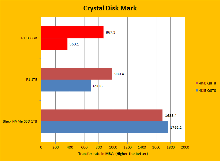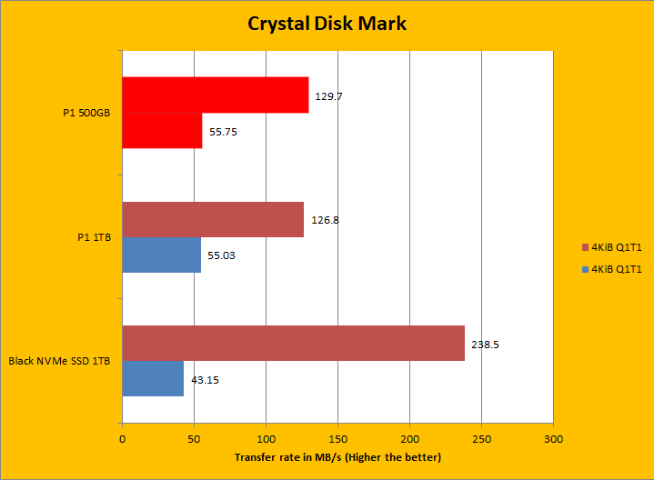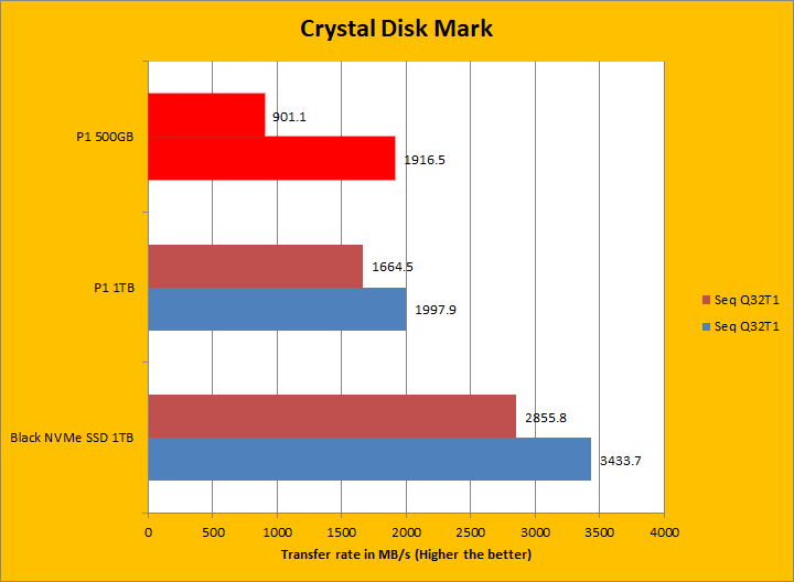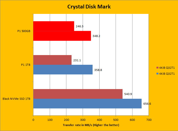 As for this review, we updated our Crystal Disk Mark benchmark to version 6.0. However, the results are not compatible with the older version 3.0 we have tested with in the past, so we have to restart our graph results. Looking at the sequential read and write results, this Crucial P1 500GB is the slowest of the three, though this should come to no surprise. This follows a similar trend with the rest of the results and the P1 500GB even closed the gap with slightly higher numbers in the 4K tests. Otherwise, you can see the dominant display of the WD Black NVMe SSD 1TB, which is more a testament to its great performance numbers rather than the ones from the P1. However, we will continue to see more drives on this graph in the future, so we can get better relative results.