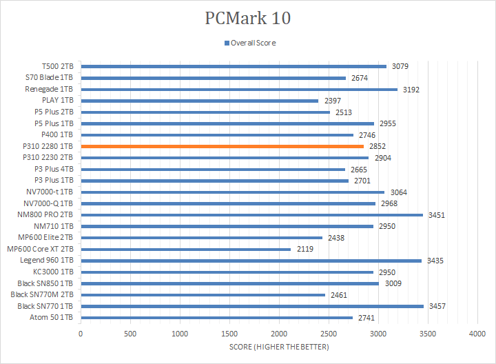 PCMark 10 is a popular full system benchmark from UL. We used PCMark 10's Full System Drive Benchmark to test the performance of the Crucial P310 2280 1TB. According to UL, the Full System Drive Benchmark uses a wide-ranging set of real-world traces from popular applications and common tasks to fully test the performance of the fastest modern drives. The following traces were used and defined as follows: