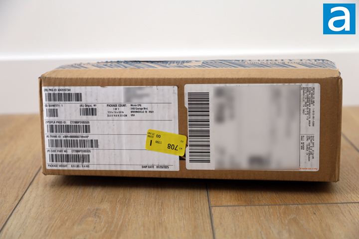 Our review unit of the Crucial P310 2280 2TB with heatsink arrived from Micron's partner, Avant Technology, in Brownsville, Texas. This box came via FedEx and their International Priority service and arrived in excellent condition. There are no bumps or bruises on the box to be concerned about. It came to our APH Networks location here in Calgary, Alberta.
