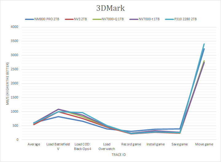 3DMark is the continuously updated version of the popular gaming benchmark from UL. We used 3DMark's Storage Benchmark to test the performance of the drive. According to UL, the Storage Benchmark uses traces recorded from popular games and gaming-related activities to measure real-world gaming performance. The following traces were used and defined as follows: