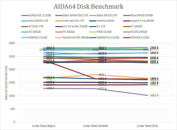 As our SSD review benchmark results are presented in alphabetical order, first up on the list is AIDA64 Engineer. AIDA64 Engineer is a fully synthetic benchmark. This means it is not necessarily a direct representation of real-life performance, such as how fast applications start or how fast it takes to start up your operating system. However, it does provide valuable insight into performance between different drives and different controllers.