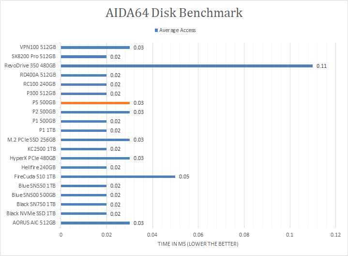 From our results, the Crucial P5 500GB performed well, but not necessarily near the top of the list. In our linear read tests, the P5 500GB ranked in seventh overall, which is good, but fell behind some budget drives like the Crucial P1 1TB and P2 500GB. On the other hand, this is close to other solid state drives like the Kingston KC2500 1TB. Moving to the random read and buffered read tests, the Crucial P5 ranked eighth and sixth, respectively. Interestingly again, the results were behind the P2 500GB in both tests. The tested random access time was 0.03ms, which is not necessarily the lowest, but still pretty fast. The rest of the comparison results against all the other drives can be seen in our graphs above. While these results are mostly in the middle of the pack, these are still synthetic tests, so we should continue on before drawing conclusions.