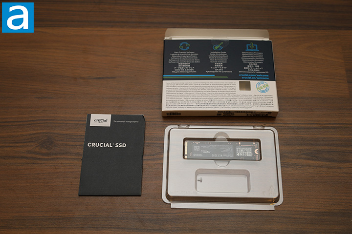 Opening the box reveals the Crucial P5 Plus 1TB itself and a screw placed on a clear plastic tray. There is also a multi-language quick start guide that points you to the company's website. This is it -- out of the box, you will get nothing more than what you need. Not that we need them anyway, of course.