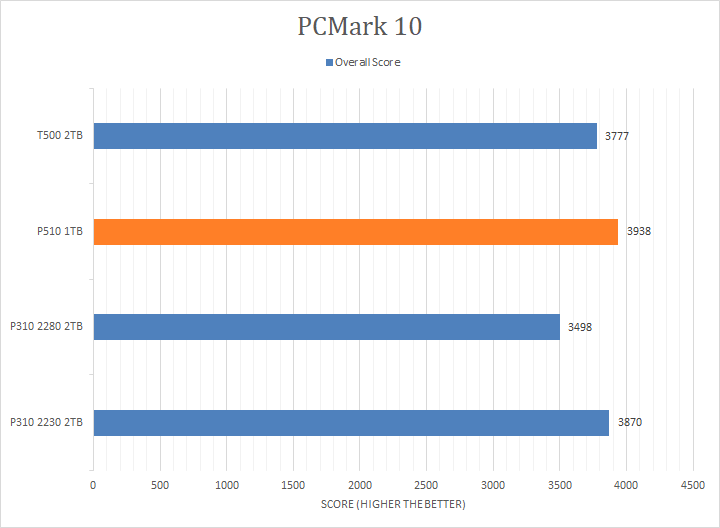 PCMark 10 is a popular full system benchmark from UL. We used PCMark 10's Full System Drive Benchmark to test the performance of the Crucial P510 1TB. According to UL, the Full System Drive Benchmark uses a wide-ranging set of real-world traces from popular applications and common tasks to fully test the performance of the fastest modern drives. The following traces were used and defined as follows: