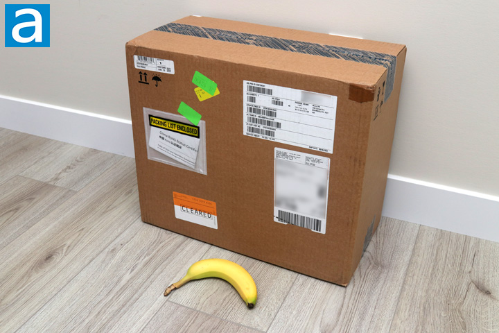 Today's review unit of the Crucial Pro DDR5-5600 2x16GB memory kit arrived from Brownsville, Texas. Although the shipping label says it came from Micron Consumer Products Group, Micron does not have any listed offices in this area. Instead, this is from Avant Technology, who partners with Micron as a supplier. According to Google Maps, in the same building are other companies, like American Ship and Snorple. Otherwise, traveling with FedEx and their Express service, this large box arrived at our offices here in Calgary, Alberta. On an aside, they did not send us a banana, but I put it here to show the size of this box. It was a bit surprising, especially as we only have a single kit of memory inside.