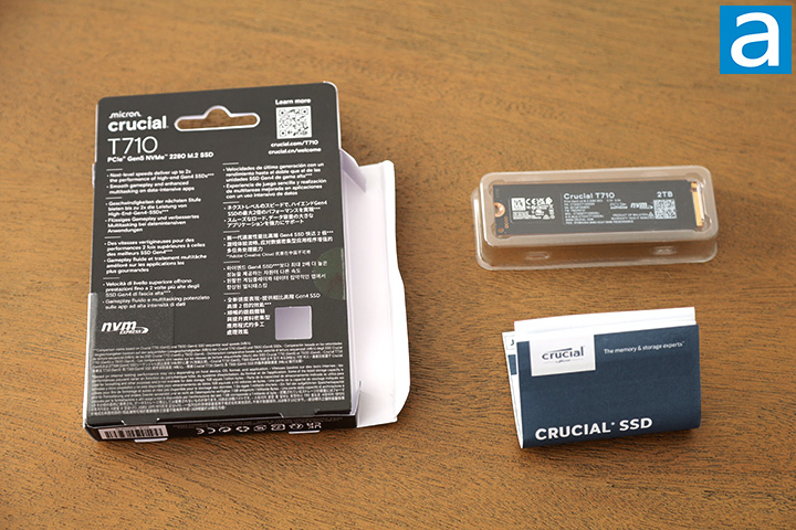 Opening the box reveals the Crucial T710 2TB itself placed on a clear plastic tray. There is also a multi-language quick start guide that points you to the company's website. This is it -- out of the box, you will get nothing more than what you need. Not that we need them anyway, of course.