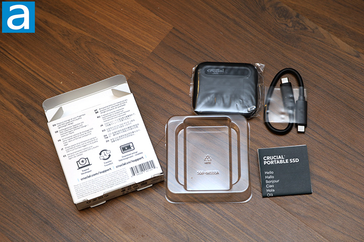 Out of the box, everything is neatly laid out thanks to a clear plastic tray and the fact there is not a whole lot of stuff to begin with. You will receive the Crucial X6 2TB itself, USB Type-C to USB Type-C cable, and a multi-language quick start guide. This no-frills approach keeps the retail box small and excess waste low, and I am always appreciative of companies who do not throw in extras for the sake of throwing in extras. If you need a USB Type-C to USB Type-A adapter, you can get it for an addition $3 from the company's website.