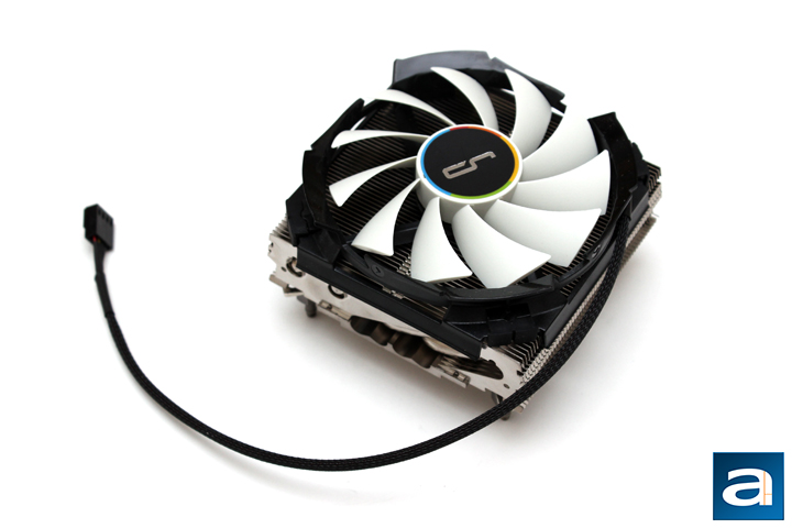 When you look at the CRYORIG C7, I think comparing it to the Intel stock cooler is to be expected, especially when it comes to sizing. This is because the C7 is small, and I mean very small. In fact, it goes quite well with the recently reviewed "cute" mITX motherboard. This baby-sized cooler looks a lot like the Noctua NH-L9x65 too. Thus, some comparisons between the two coolers will be included throughout the review. As this is intended for an mITX build, the small size is understandable, and should allow you to use it in even the thinnest of computer chassis. Fins are lined up perpendicularly and right over the processor, just like the Noctua NH-L9x65. Color choice of the CRYORIG C7 follows a standard black and white scheme, with silver for the metal portions. This means the C7 should be also be able to fit in most builds in terms of colors. There is a small rainbow-like pattern in the middle of the fan, but it is barely noticeable.