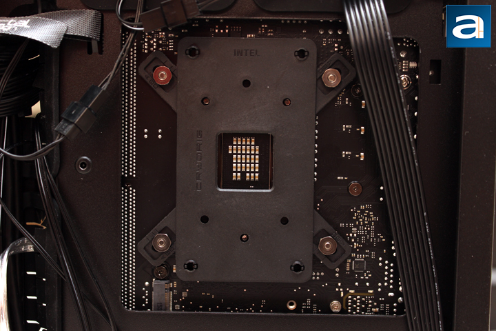 Afterwards, you should adjust the screws on the heatsink of the C7, depending on if you have an Intel or an AMD CPU. For Intel CPUs, keep the extended mounting bars on, and adjust the screw position depending on the socket. For AMD, remove the mounting bars and attach the screw directly. In addition, you will need to remove AMD's mounting bracket and backplate on the motherboard. You can then push the C7 through the holes on the motherboard. As you say hello from the other side of the motherboard, this is where you can attach the plastic back plate. With the small wrench provided, you can use tighten the bolts onto the protruding screws. One thing CRYORIG did not realize originally with their plastic backplate is the fact some mITX motherboards had protruding components on the back, interfering with the back plate. Thus they included four plastic washers to be used in substitution should there be any interference. If you have already purchased the C7, you can contact CRYORIG, and they will send you these washers free of charge. Thankfully my mITX motherboard, like a Ghost Pokémon being attacked with a Normal type move, was unaffected, so I was able to use the back plate.