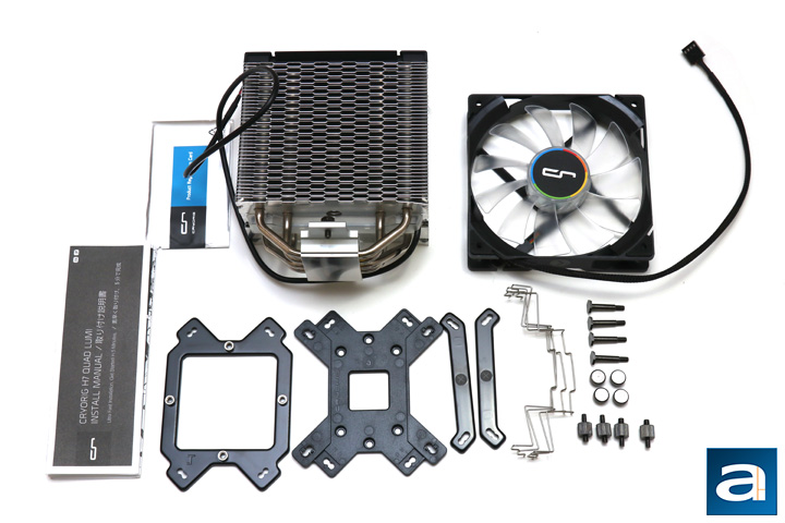 Out of the box, the CRYORIG H7 Quad Lumi comes with quite a few accessories. Once again, the box is a pretty small package, which means there is not a whole lot of wasted cardboard. Out of the box, we have the H7 Quad Lumi with a QF120 LED fan attached. Other accessories include mounting parts such as screws, arms, backplate, and fan clips. With the included mounting accessories, users can mount the H7 Quad Lumi on Intel LGA2011/V3 and LGA115x sockets, as well as AMD's AM4, AM3/+, AM2/+, FM2/+, and FM1 sockets. A tube of CRYORIG's CP7 thermal paste is also included, though it eluded the photo above. Finally, a user manual with a product registration card comes with the whole kit. For your information, CRYORIG offers a standard three year warranty, though this extends to six when you register the product. This is a pretty good as it matches up with Noctua's coverage length.