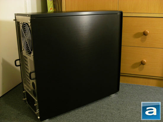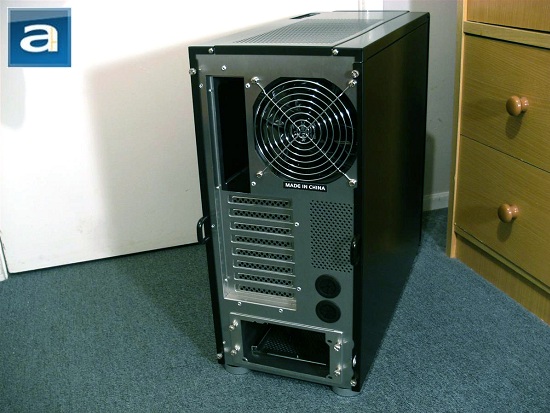 The rear side of the Cubitek XL Tank has been left in its original aluminum unpainted state, which provides an interesting contrast to the sleek dark appearance of the rest of this case. Giving it a black finish like the other panels would have provided a more aesthetically pleasing level of uniformity to the case as a whole; however, having said that, it is true that the average user will not see a great deal of the back panel once all components have been assembled, so this is an issue of secondary importance. That is not to mention aluminum is considered a high class material for computer cases, so why not leave it bare for showing off?