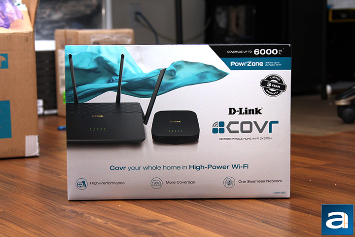 This is the first time I have received anything from D-Link to review. Like a very clear majority of products that we get here at APH Networks, the networking equipment giant sent us their latest creation in its retail packaging. The predominantly white box is an embodiment of D-Link's classic colors of teal, grey, and black, which you can see in our photo above. On the left, a photo of the main router and extender can be seen placed next to each other in front of a flare of teal fabric, followed by D-Link's logo and Covr product name. The product slogan, "Covr your whole home in High-Power Wi-Fi", is printed boldly beneath. Along the bottom is an array of three icons providing some highlights of this product, which is high performance, more coverage, and one seamless network. In the top right corner, D-Link advertises the Covr being able to cover up to 6,000 square feet -- probably no coincidence with the Linksys Velop -- and PowrZone that delivers "up to 2x faster Wi-Fi". By two times the performance, they mean twice the speed of AC1200, which is kind of trivial, haha. The remaining sides of the box has more feature highlights and specifications.