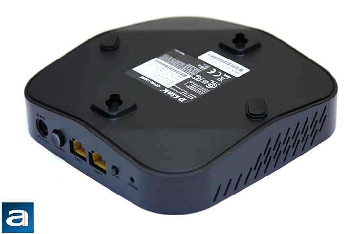 At the back, there is a 12V DC power input, power button, two Gigabit Ethernet ports, Wi-Fi on/off button, and a reset button. These ports can be used to connect to wired devices to your main network. Word on the street is one of the Gigabit Ethernet ports can also be used to connect your extender to your router for a wired backhaul instead of a wireless backhaul for increased Wi-Fi performance. At the bottom, two integrated plastic feet with rubber bottoms provide about a quarter centimeter of additional clearance between the extender and your table. Two mounting holes in the middle lets you wall-mount your extender should you prefer that; just like the COVR-2600R.