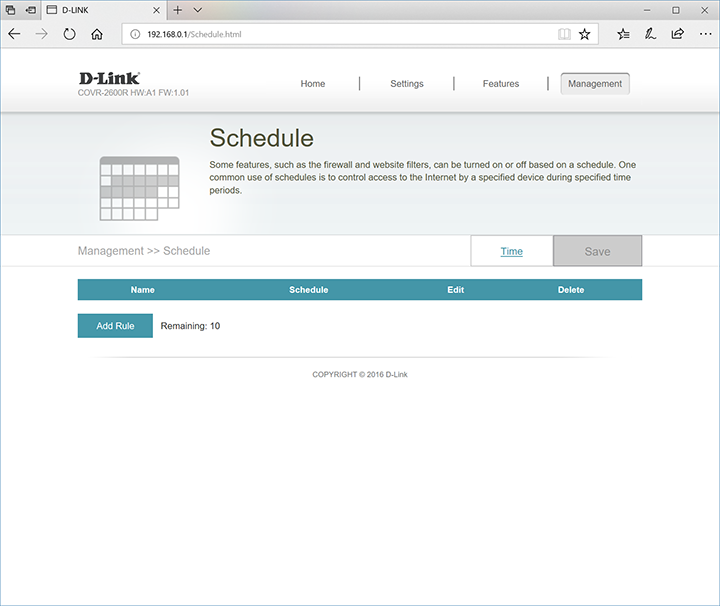 All in all, I found D-Link's web configuration interface to be clean and simple looking, which is good. The layout and graphics are basic with nothing distracting. All options are organized logically, and I never had an issue finding a certain setting that I want. However, the available features are primitive even for a consumer-focused product compared to competing offerings from Linksys and TP-Link. Furthermore, features such as scheduling are not intuitive to use, which is ironic considering how simple the user interface is. I am happy there is no requirement to install an app on my phone or have internet access to make the Covr operational, but the company really has a lot of work to do to bring their web interface up to 2017 standards.