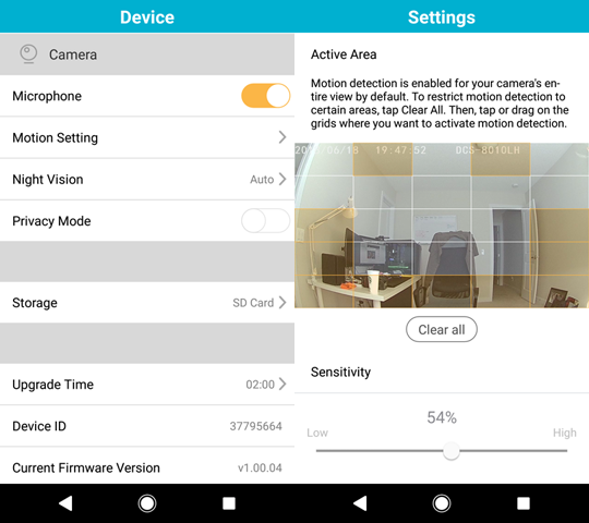 In the motion settings page, you can change the areas you want the motion detection to be active in. This can be helpful if you have pets at home, as you could block out the lower regions when you mount this camera on a higher area. You can also change the sensitivity of the selected areas, though you probably want to adjust based on your own calibration.