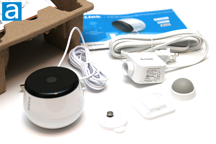 D-Link has packaged their DCS-8600LH in a brown hard-shell cardboard carton with plastic bags separating the camera and its accessories. The camera is also wrapped in lots of shrink wrap to prevent any surface dings or scratches from appearing. Other items found inside include a magnetic mount and wall mounting items as well as a power cable for the camera. Some documentation is also included inside, including a quick start guide and some other information. Just for your information, the camera comes with a single year of limited warranty coverage.