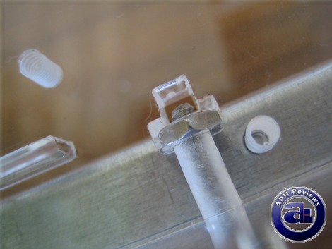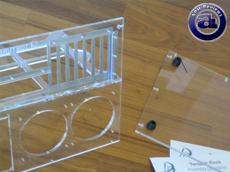 The base is the easy part -- after installing the four rubber feet, it attaches to the main unit the same way the middle piece does -- Danger Den's tight and secure screw and washer combination.
