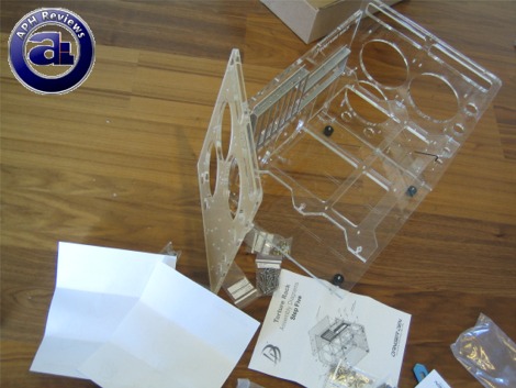 Before we talk about build quality, let's talk about the packing quality -- after removing the tight plastic wrapping, we discovered that a total of five pieces of clear acrylic side pieces were included. Each one has one side with paper glued to it to prevent creation of scratches when the pieces rub against each other during transportation. Therefore, everything arrived in perfect condition and scratch-free.