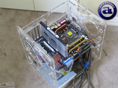 In general, there's only one thing I want to say: Danger Den's Torture Rack rocks! Whether you are a computer enthusiast who loves swapping components, a PC shop needing a computer to test equipment, wanting something other than a non-traditional PC case, or even just want to show off the hardware inside your computer, the Torture Rack is designed just for you. This product tells me that you don't need a traditional computer case to use a computer -- the simple construction and beautiful acrylic walls of the Danger Den Torture Rack holds a degree of beauty on its own while retaining what's inside your computer and making it as clear as possible. The build quality is excellent; all cuts are cleanly made and smooth, and carefully engineered to accommodate demands of both looks and functionality. It's certainly not perfect; certain parts can be improved such as power supply opening at the back and possibly the placement -- as well as easier fan mounting without washers to allow easier installation and compatibility with any standard case fan.