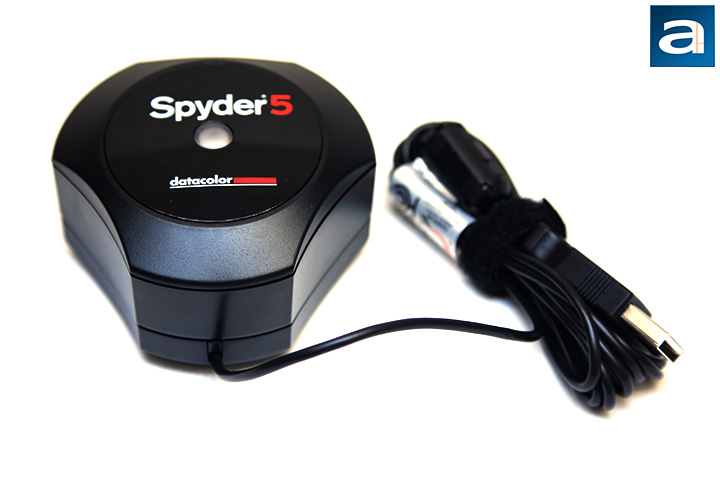 Our photo above shows the Datacolor Spyder5PRO with the lens cap detached. Both the colorimeter itself and the lens cap -- which doubles as the counterweight when detached -- is padded with a foam circle to ensure the device will not scratch your monitor, or even make marks on it. The Spyder5PRO hardware features a 27mm seven color sensor, which the company claims as an improvement over traditional colorimeters with a three channel RGB sensor. The latest generation also features redesigned baffle with a deep and narrow honeycomb filter to reduce stray light interference. Our photo above also shows the integrated tripod mount, but only the Spyder5ELITE supports projector calibration.