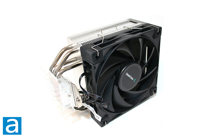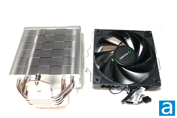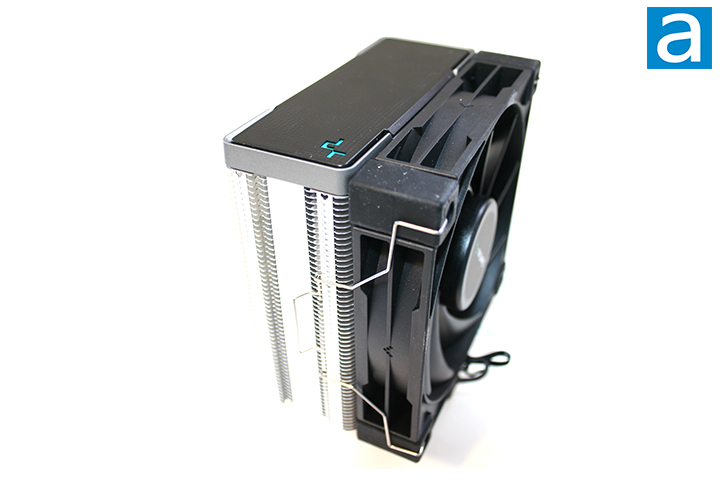 The DeepCool fan in question is nothing out of the ordinary. According to the manufacturer, the included fan is a fluid dynamic bearing 4-pin PWM fan. The fan runs at a maximum speed of 1850 RPM and is rated to run at 12V and 0.13A. The rated noise is about 29 dBA. The fan has a maximum rated airflow of 66.47 CFM and air pressure of 2.04 mm H20. This fan uses a black color scheme with black fan blades, which makes sense, as this is not an RGB LED fan. Based on the specifications, this fan should be able to work well for this cooler, so I personally feel there is no need to swap it out. The DeepCool fan can be mounted using metal clips directly attached to the fan. While this fan comes mounted on the AK400, you will have to remove it for installation, since the front side of the fan covers one of the mounting screws.