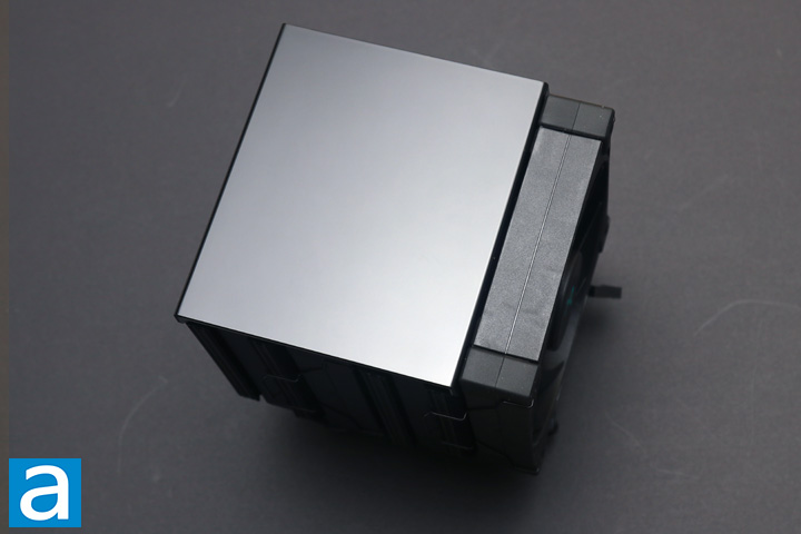 The photo above shows the bottom of the DeepCool AK620 Digital and how the heatpipes lead out of the base and into the fin array. The base is very flat, which should translate into the entire base pressing evenly on top of the processor. A quick inspection also reveals there are no abnormalities here with no milling marks seen. This whole heatsink is composed of different materials. The base and heatpipes are composed of copper with nickel plating on the outside. Copper is used because it has one of the best heat transfer abilities with a thermal conductivity of 401W/mK. Meanwhile, the fins are made up of aluminum as it is quite a bit lighter in comparison to copper. This reduction in weight will reduce stress on the motherboard, although aluminum has a lower conductivity of 237W/mK, which is not as optimal for heat transfer, but the trade-off is understandable.