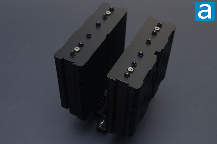 The two fans mounted on each fin stack of the DeepCool AK620 Digital is mounted with metal wires that clip to the side of the stacks. This means you can swap out these fans, if you so desire, for any other 25mm thick 120mm model. These clips work really well since they ensure the fan stays attached while also allowing flexibility in mounting height, if this is necessary. You will need to remove these fans during installation, but we will explore this later on. The clips are also black in color to blend with the rest of the AK620 Digital's appearance.