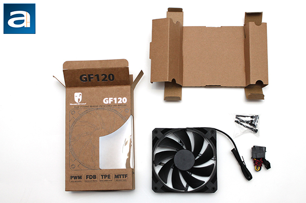 Pulling the fan and other accessories out of the box, you will find the GF120 120mm fan itself, Molex to 4-pin adapter, and four rubber mounting grommets. To add to the idea of being environmentally friendly, a physical manual is not included, but can be found on Deepcool's product webpage. Having said that, it should be relatively easy to install a fan, given the proper tools and mounting spots, so I doubt many people would take the effort to look it up in the first place. Before we move on to the rest of the review, let us take a closer look at the specifications of the fan, as obtained from the manufacturer's website: