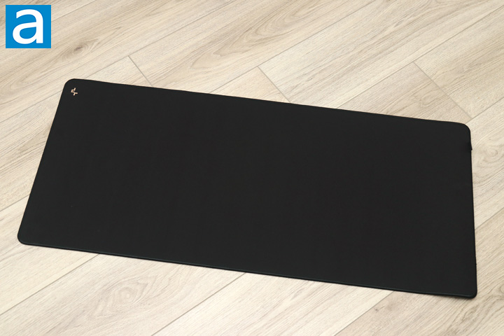 Rolling out the DeepCool GT920, you can see this is indeed a deskmat with a large size that should be able to span most of your working area. In terms of appearance, the DeepCool logo can be found on the top left corner. On the right side, there is a tag that reads "CORDURA Brand Fabric". I do not like the placement of this tag, as this could impede with things like a mouse cable. However, I am glad to see DeepCool use a notable fabric brand for its surface, as it is well-regarded for its durability. There are several different lines of CORDURA fabric, so while this may not be exactly the same material used for military or outdoor gear, the branding is promising. As for its size, the GT920 comes in at 900mm by 400mm surface area and thickness of 3mm. This size is pretty typical for this form factor. However, if you want other sizes, DeepCool has the GT910 and GT930, which come in smaller and larger dimensions, respectively. I do find it strange that DeepCool would use different model numbers for each size instead of slapping a size at the end of the model for clarity, but at least it is understandable that a larger number equates to a larger size. Otherwise, all of the edges are stitched together to ensure the sides do not come apart from the rubber base or start to fray. This stitching is relatively low profile and I did not notice it much when my arms were rested upon it.