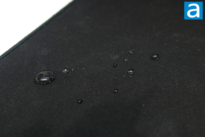 Before we continue on to the surface inspection, let me quickly go over the advantages and disadvantages of a cloth-based mousing surface. Cloth-based surfaces provide better comfort and control, are easier on mice feet, generates little noise during use, can even out some imperfect surfaces, and is more portable. Unfortunately, it can come at reduced glide performance, and is inherently bound to attract and accumulate dust, dirt, and liquid. This can include human liquids too, such as sweat from your hands. Plastic, aluminum, glass, or any other solid surface can easily be run under the tap to restore it to original condition, but you cannot do the same with cloth surfaces. I especially would not recommend washing your DeepCool GT920, as soaking it in water can potentially negatively affect the consistency of the surface. DeepCool says this pad is spill resistant and in practice this is true. When I poured some water on the pad, the water would bead up to give users time to wipe it up. This is not exactly new from CORDURA, but it is a much appreciated feature, especially for those who like to stay hydrated while gaming, but are a bit clumsy at times.