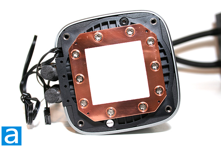 The water block is rated at 5.64W with the power being supplied by the 12V 3-pin header on your motherboard. The pump runs at a maximum speed of 3100 RPM ± 10%, which is higher than what you would normally see for pump speed. The contact base is made out of copper, which has a high thermal conductivity at 401 W/mK. Copper is heavier than aluminum, but we do not need to worry as much about the weight of the pump as it is much smaller in size compared to the radiator. A nickel-plated contact base would have been nice to have, as nickel and nickel-base alloys can withstand corrosive environments and high temperatures, which proves to be an advantage for devices made for dissipating heat. Overall, the LS720 is solidly built with good build materials used throughout.