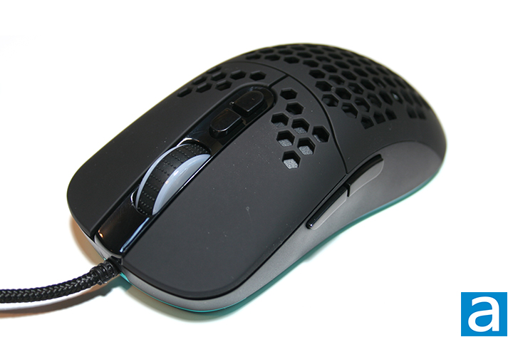 When it comes to physical dimensions, the DeepCool MC310 measures 68mm in width, 126mm in length, and 38mm in height. The MC310 weighs in at 75g, which is fairly light for a mouse, but it is slightly heavier than expected given its honeycomb shell. We have seen lighter in the category like the Cooler Master MM711. The weight is balanced to the center, meaning it will feel balanced when you lift it up. When using the DeepCool MC310, I found I was most comfortable using a palm grip due to the larger size of this mouse. I still found this mouse to be generally comfortable to hold for short to moderate periods when using a claw or finger grip. The build quality of the MC310 is generally good, although the mouse will flex a little bit if you press down on the bottom. This is not a severe issue though, especially since weight is usually not applied on the bottom side of a mouse.