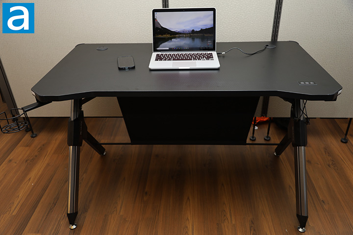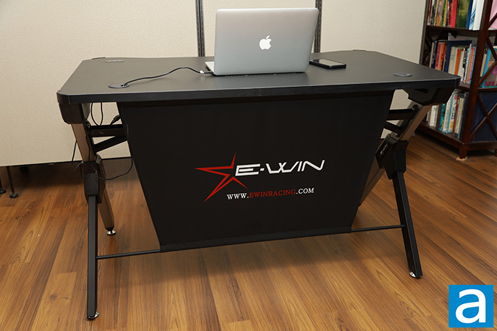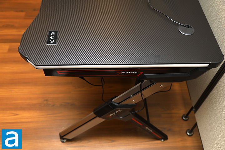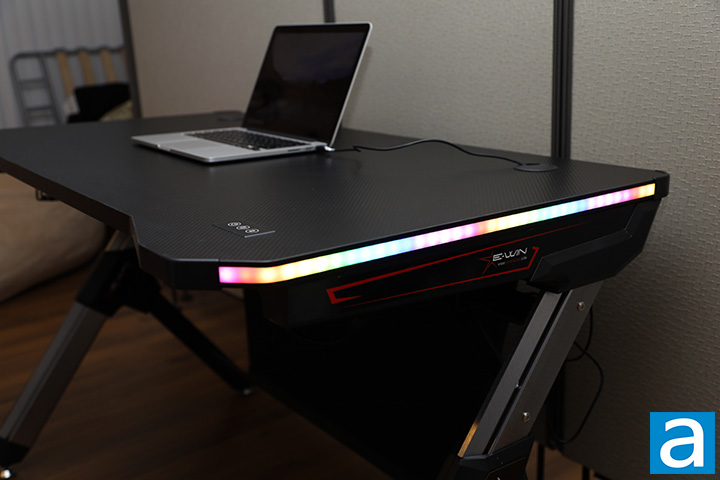 Now that the E-WIN 2.0 Edition RGB Gaming Desk is assembled, let us take a closer look at the features of this product as well as the usage experience. I started using the desk and I found the carbon fiber desktop to be solid with little flex. The X-shaped aluminum legs are also very stable. I like how the desk is cross braced in two areas for additional strength. Overall, I found this gaming desk to feel very solid all around and I have no questions about its physical build quality.