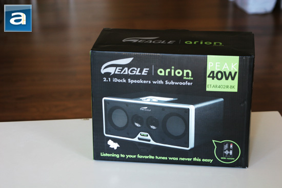 Anyway, jokes aside, our review unit of the Eagle Arion ET-AR402IR-BK 2.1 iDock speakers arrived in a small brown corrugated cardboard box from Eagle Tech's offices in California, USA. Using UPS Standard, everything arrived safely and securely with no physical damages on the shipping box at all. Eagle Tech took extra care to blast the gap between the shipping box and the retail box with extra packing peanuts to ensure everything arrives in absolute pristine conditions into our hands.