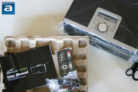 After over 150 hours of break-in time (Well above typically required period), we put the Eagle Arion ET-AR402IR-BK 2.1 iDock through our tests. All tracks are uncompressed CDs, FLAC, or LAME encoded MP3s at 192kbps or higher.