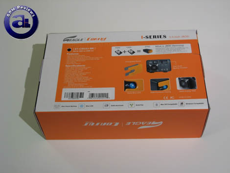 The back of the box has pictures displaying the features of the Eagle product in color. In terms of design, is very good; and the color scheme flows very well with the product itself. Before we move on any further, let's take a look at the specifications and features as obtained from Eagle's website:
