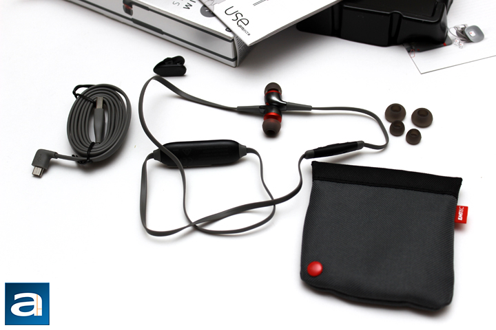 As it was listed above, inside the box you will find a few standard items inside. For one there is the Stay Earbuds Wireless, with the medium size silicon buds pre-attached. Small and large ear tips are also available to suit users' ears. There is also a "quick" user guide, which is actually quite large, and it explains the general operation in many of languages. I was kind of sad to not see any Chinese, but thankfully I read English better than my own mother tongue. A duo-tone carrying case is also found, which feels high quality. Even though it is just a simple pouch, the material is well chosen and the entire pouch is large enough to hold the earbuds with some space for the charging cable too. Speaking of which, a flat wire charging cable is provided here, which is nice to see. Finally, a small plastic clip is provided to let users attach the Stay Earbuds Wireless to their clothing, in case they are moving a lot. Now, let us take a closer look at the product itself.