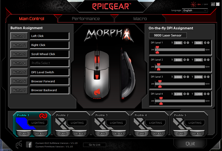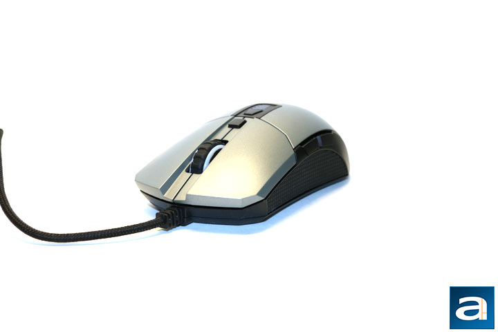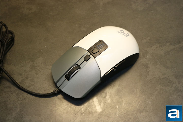 If you have ever wondered what a standard looking mouse looks like, look no further than the EpicGear MorphA X. Although I have heard looks can be deceiving, I will talk about that a little later. The body of the MorphA X is plastic, but it does not feel cheap. The silver-grey exterior looks quite nice, but it can be exchanged for a white shell. As said before, its design is mostly standard. On the left side, there are two programmable buttons for your thumb, while on top of the mouse, there are two extra buttons besides the usual left and right click. The one closer to the back changes the DPI settings, while the one more to the front cycles through five different profiles. It is not as important to be able to hit these buttons quickly, so it is nice for them to be slightly out of the way. Also, their positioning makes it harder to hit them accidentally during an intense gaming session; potentially ruining a good game.