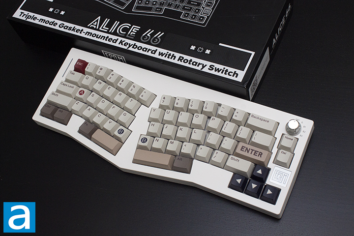 The Epomaker Alice 66 is a good contender for the ergonomic Alice layout keyboard. The overall build quality is quite rigid despite the plastic build. The appearance is quite nice, offering a unique appearance for your desk setup. Given the white base, users should be able to create a cohesive setup easily. The lighting settings are quite nice, as they shine around the keycap despite not having shine-through keycaps. When it comes to software, the Alice 66 uses VIA. VIA is quite powerful in customizing the Alice 66 to how you see best fit in regard to bindings and lighting. When it comes to typing experience, I found it to be on the softer side, given this is a gasket mounted keyboard. I will say the sound produced was good and on the louder side. The sound offered was on the clacky end, with the foam enhancing the sound. Our particular model came with the Epomaker Wisteria switches, which offered a good typing experience with an acceptable gaming experience. The 2.4 GHz connection was seamless, having no issues and being quite responsive. I found the included cable to be quite good, as it comes braided. Something I found weird was the knob usage for toggling between connectivity modes. Most knobs are used to control media, so this implementation felt strange. That being said, despite some flaws in design, I do think the Alice 66 has many benefits when it comes to the user's wrist health, but there will definitely be an adjustment period, especially for those who do not type using standard methods. At a price of $90 USD at press time, the Epomaker Alice 66 is definitely a good option for anyone seeking out an entry Alice layout keyboard.