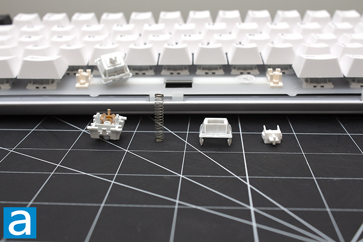Upon closer inspection of the Feker Marble White switches, I hope to provide you with more detail in the makeup of the switch. For the Marble White switches, the top housing is polycarbonate, bottom housing is nylon, and the stem is polyoxymethylene, or POM for short. POM is known for its high stiffness, low friction, and excellent strength. Specifically, this material has a coefficient of friction of around 0.25 to 0.3, which is low when you consider this is a measurement on a 0 to 1 scale. As such, you can see why you would want a switch stem to be made out of POM. This stem would be considered a long pole stem, which results in a shorter total travel. I personally use a long pole switch on the daily, so I had no issue, but for anyone worried that it might feel weird, the difference is only 2mm from a regular switch. As for the top housing, polycarbonate is a very commonly used thermoplastic in mechanical keyboards. It is commonly used for translucent switches, which is important for light to shine through, but in this case, it is opaque. The bottom housing uses nylon, which is quite smooth with a coefficient of friction of about 0.26. I find nylon offers a deeper pitched sound when it comes to bottoming out. The spring is quite long at 20mm.