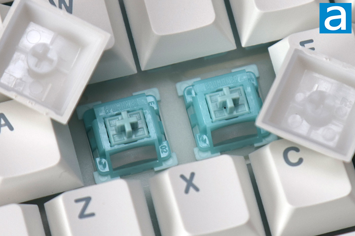 One of the key selling points of the Epomaker HE108 is its switch technology. Hall effect switches are still made similar to mechanical switches as it consists of a housing base, stem, and spring, offering varying levels of tactile and audible feedback. For Hall effect switches, these have a small magnet at the bottom of the stem, and the magnetic field is detected by a sensor on the keyboard to detect key presses. More specifically, these are Epomaker Creamy Jade HE Hall effect switches. They are linear in travel and require a bottoming out force of 55g, and a configurable actuation point from 0.1mm to 3.3mm in 0.005mm intervals, and total travel of 3.3mm. These connect to the PCB with hot swap sockets, but there is no electrical connection between the switch and the PCB. The sockets support two-pin sockets for Hall effect switches. As such, if you do not like these or an individual one fails, you can swap it out without replacing the entire keyboard, but you can only put in other Hall effect switches.