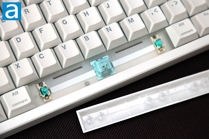 As part of our disassembly, we can start by first inspecting the keycaps. These are PBT or polybutylene terephthalate plastic with a double-shot injection. I like PBT as a material choice, as it is more durable and do not shine or fade over time compared to other commonly used plastics like ABS. The thicker wall also adds to a deeper sound when used. The legends are inserted with a second layer of plastic, which is why it is called double shot. This is why you see a white outer shell and a translucent inner plastic. As such, the legends will not fade or wear over time, but it is a costly option for making keycaps. The choice of font is clear and legible with OEM-like writing. The keycaps use standard MX stems with a Cherry profile. The Epomaker HE108 offers full NKRO over USB. NKRO stands for N-key rollover, which refers to the number of keys scanned independently by the hardware.