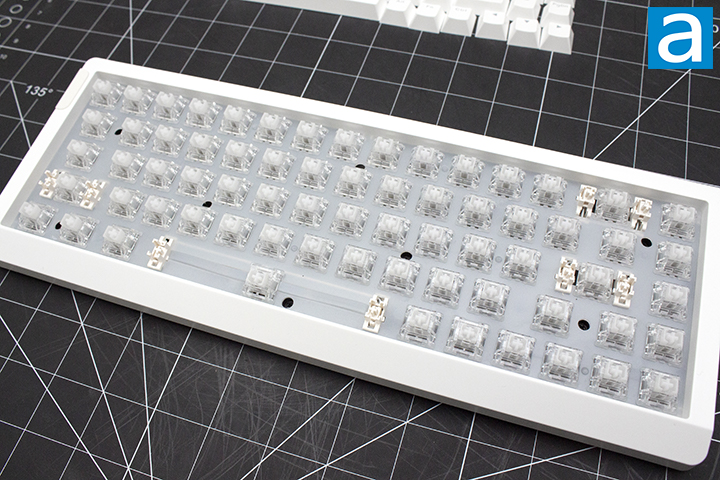 The interior design was quite standard in my opinion. Taking a quick look, the design is very simple. The Epomaker HE68 Lite is a tray-mount keyboard. The installation is the simplest of all mounting styles, only requiring one frame. There is nothing very special about the design. There is very little space, especially when accounting for the foam placed inside of the keyboard. This is fine as this is not a gasket mount, meaning there is no flex to be accounted for in the design.