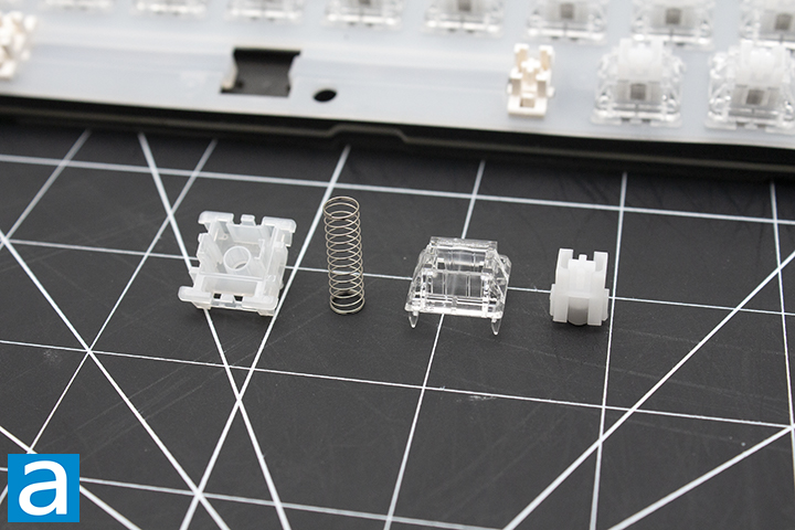 Upon closer inspection of the Epomaker Clear Mag switches, I hope to provide you with more detail in the makeup of the switch. According to the manufacturer's page, the Clear Mag switch uses a POM stem, PC top housing, and a PA bottom housing. I will not bore you with the material specifications, but they all have relatively low coefficients of friction. The POM and PA choices make sense, as their low coefficients of friction make for a smoother experience, while the PC top housing makes sense as it can be made clear, making the RGB LED lighting shine brighter. The spring is slightly longer than the usual at 18mm.