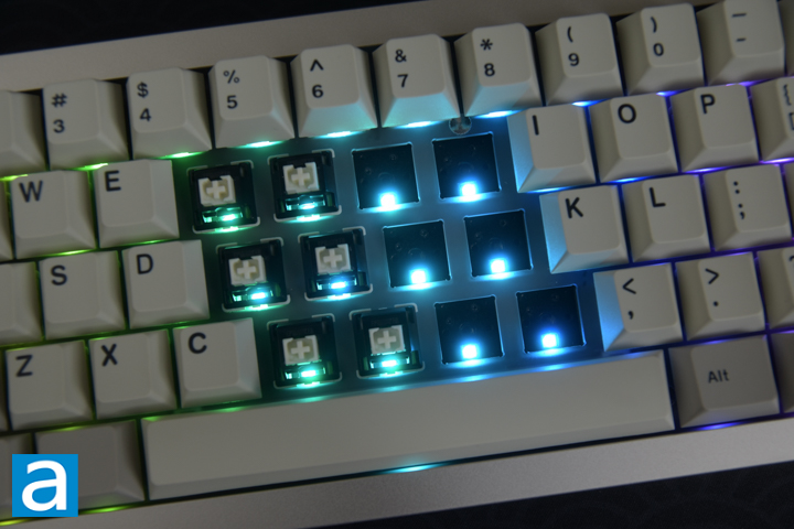 A couple of other built-in features are worth noting. The P65 features N-key rollover or NKRO. This allows the user to press any number of keys simultaneously and still have the keyboard register the inputs. It can also be set to 6-key rollover, or 6KRO, to limit simultaneous keypresses. Through the function layer by using the Fn key, other features and settings can be accessed. F1 through F12 can be used by holding Fn and the corresponding number key from one through equal key. This can be swapped for built-in Windows controls or even be swapped for Mac settings. For more customization of the keyboard keys, this can be done through the open-source VIA software.